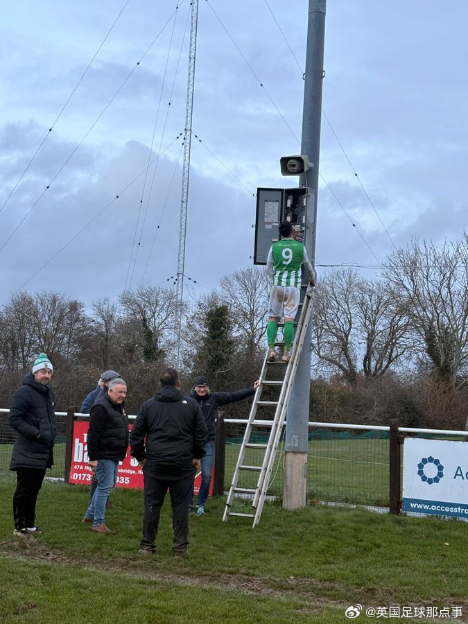 【专业对口】英国业余球队 Rusthall FC前锋科洛弗小火了一把——他被拍到在比赛期间踩着梯子修理球场大灯。他回忆说,老板在中场休息时找到他,问他能不能帮忙检查大灯是否有问题,因为他白天的工作是一名电工????